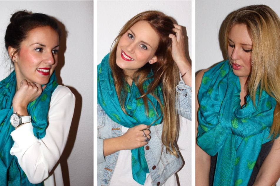 You can easily combine this scarf and it’s an absolut eyecatcher of every plain outfit. No matter if you have light brown, blonde or dark brown hair, the scarf fits to every haircolor and with its bright and beautiful color it will refresh every teint.
